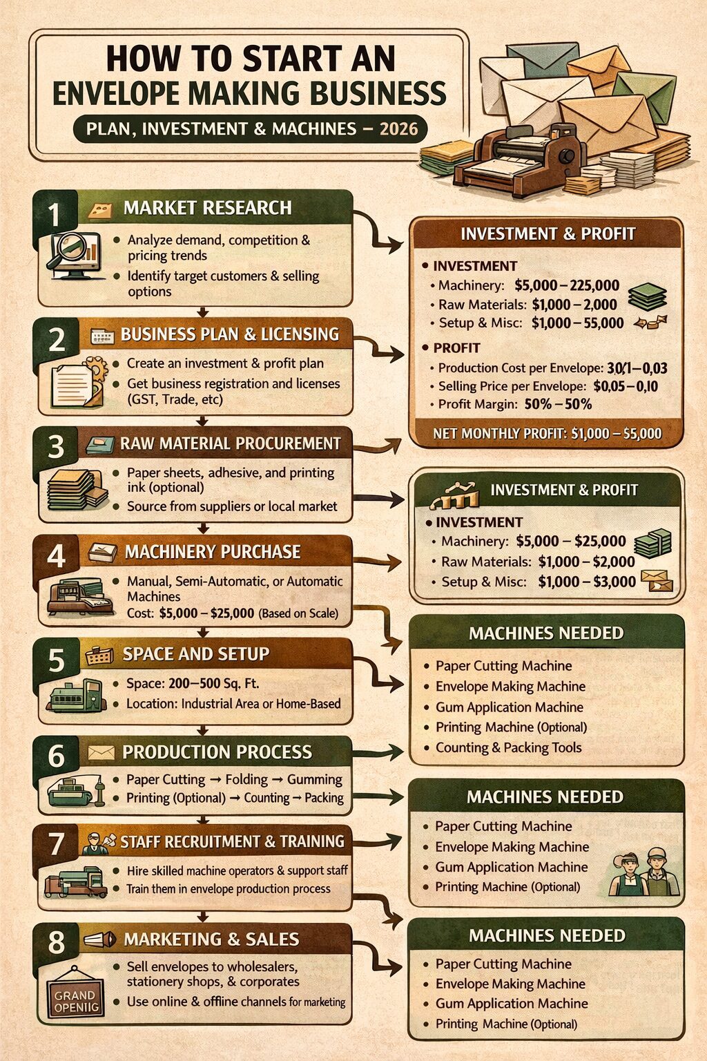 The envelope making business in 2026 is a profitable and sustainable opportunity with low investment and steady demand. With proper planning, efficient production, and smart marketing strategies, you can build a successful and scalable business.