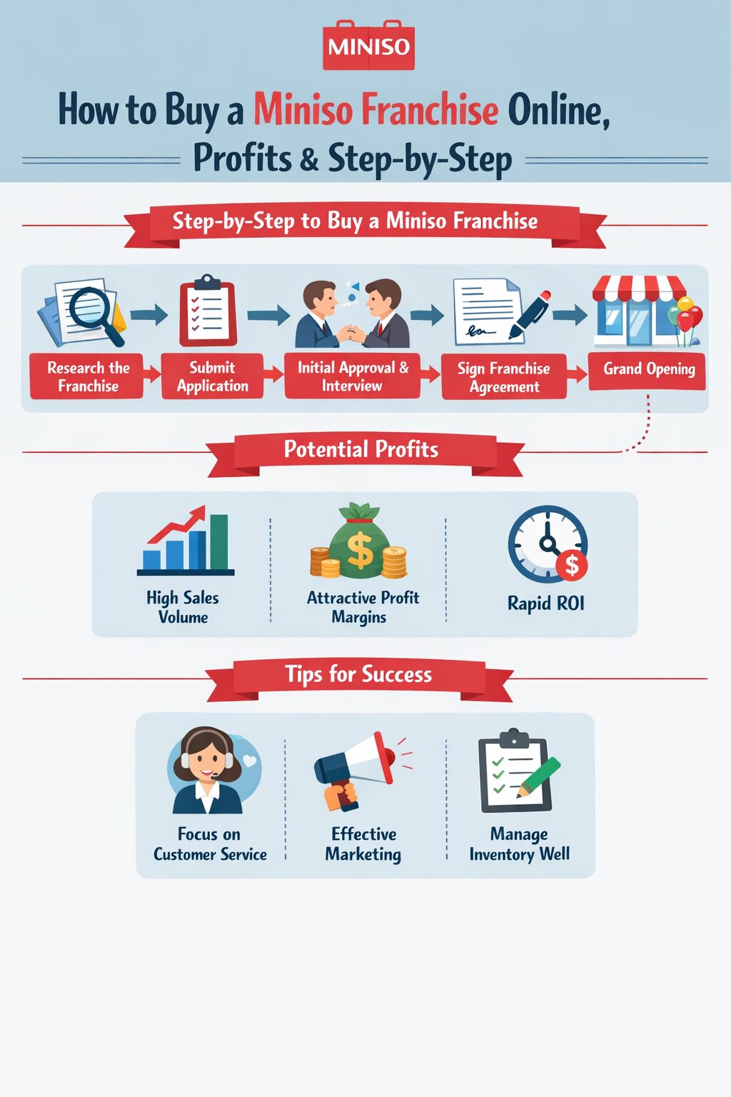 How to Buy a Miniso Franchise Online is a global lifestyle retailer known for affordable, design‑led household goods, accessories, and lifestyle products. If you’re considering buying a Miniso franchise, this guide explains the online application process, investment costs, expected profits, ongoing fees, and practical tips to improve success. This is a general overview — specific terms can vary by country and local master franchisor.