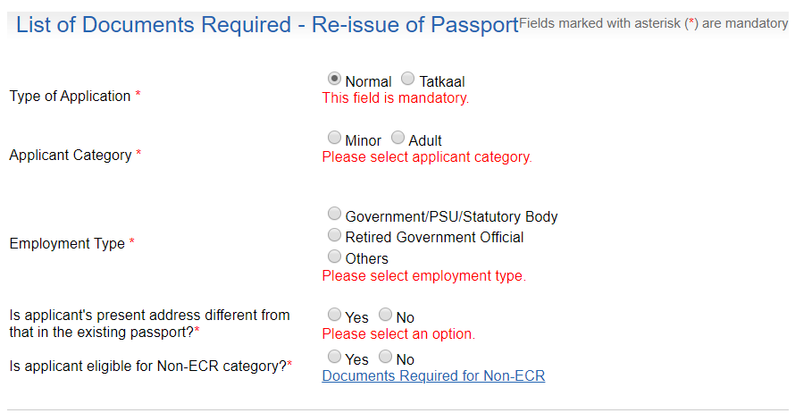 The Re-issue of Passport’ option and select the relevant option from the ones provided: