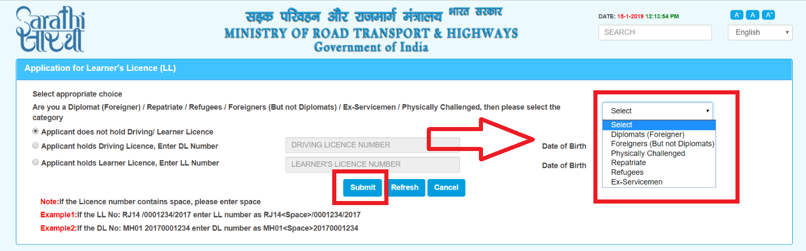 Step 6:┬ардЕрдЧрд░ рдЖрдк┬аPhysically Challenged┬ард╡рдЧреИрд░рд╣ рд╣реИ рддреЛ рд╕реЗрд▓реЗрдХреНрдЯ рдХрд░реЗрдВ, рдЕрдиреНрдпрдерд╛┬аSubmit рдкреЗ рдХреНрд▓рд┐рдХ рдХрд░реЗрдВ┬а