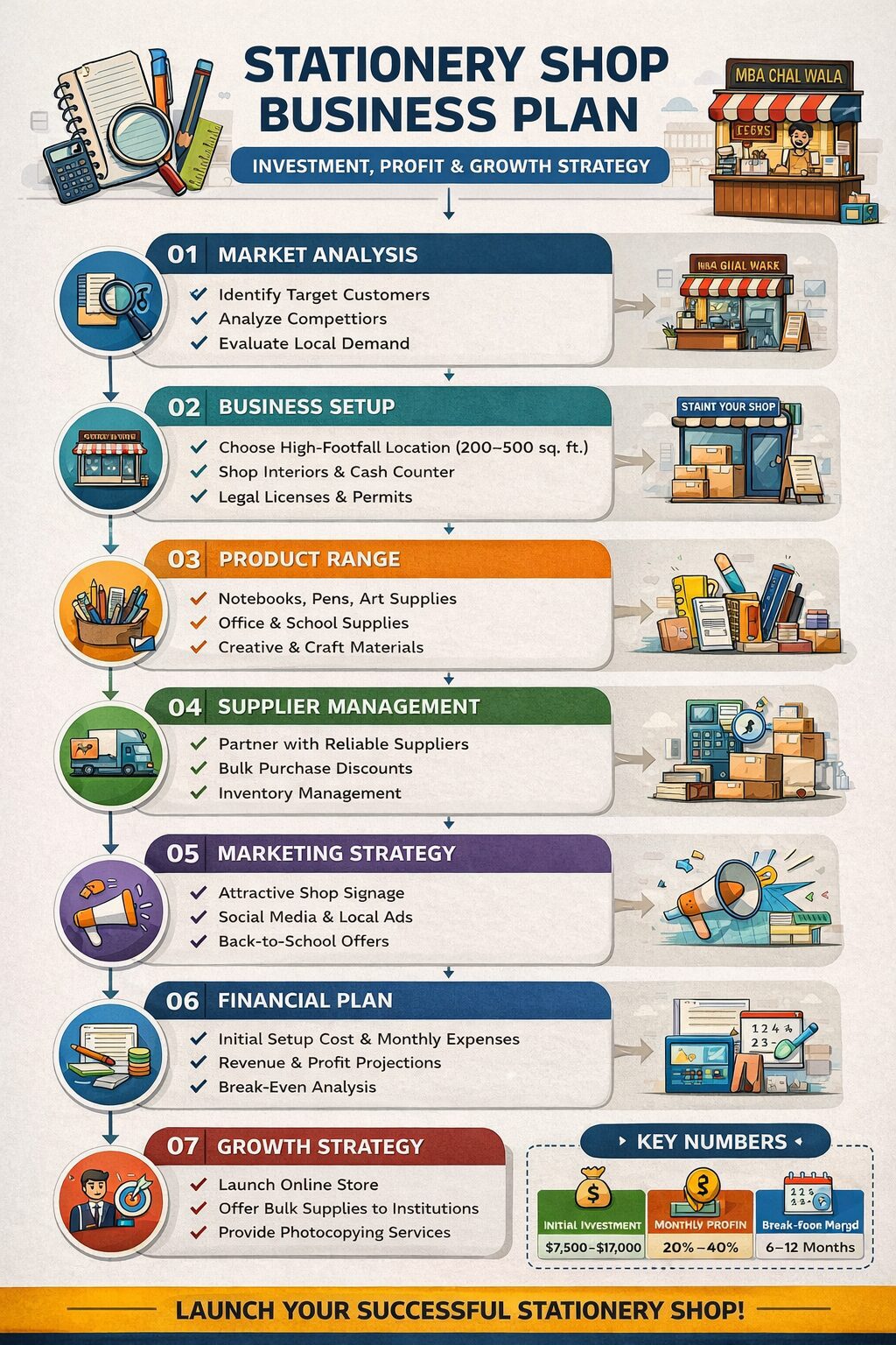 stationery shop business idea stationery shop business hindi Stationery Shop Business Plan Stationery shop business plan 2026 How to start stationery business Stationery shop startup cost Office supplies business plan School stationery business ideas Low investment retail business Stationery shop profit margin Small retail shop business plan Stationery store marketing strategy Stationery business profit analysis